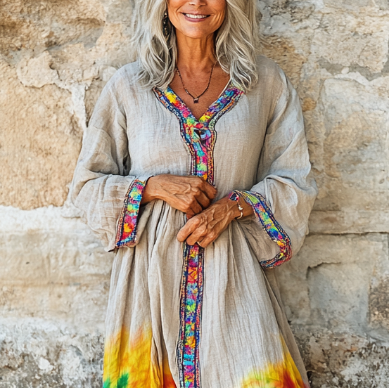 Vintage Loose Linen Patchwork Dress 96fe