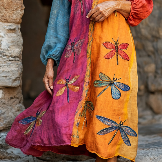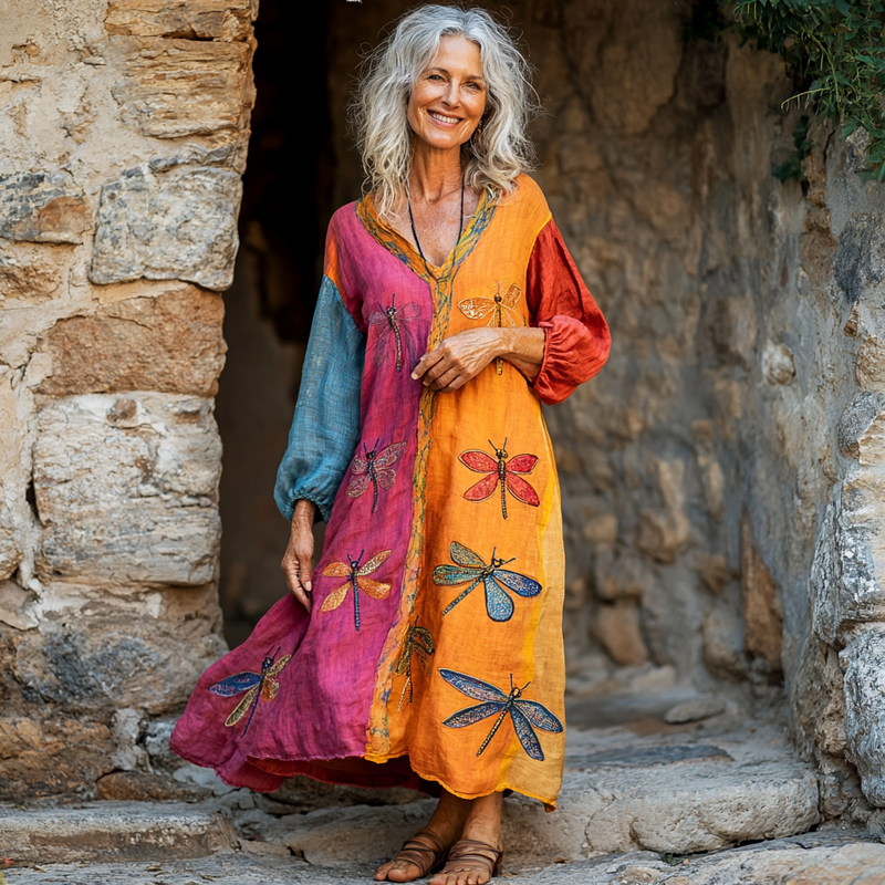 Vintage Loose Linen Patchwork Dress bf63