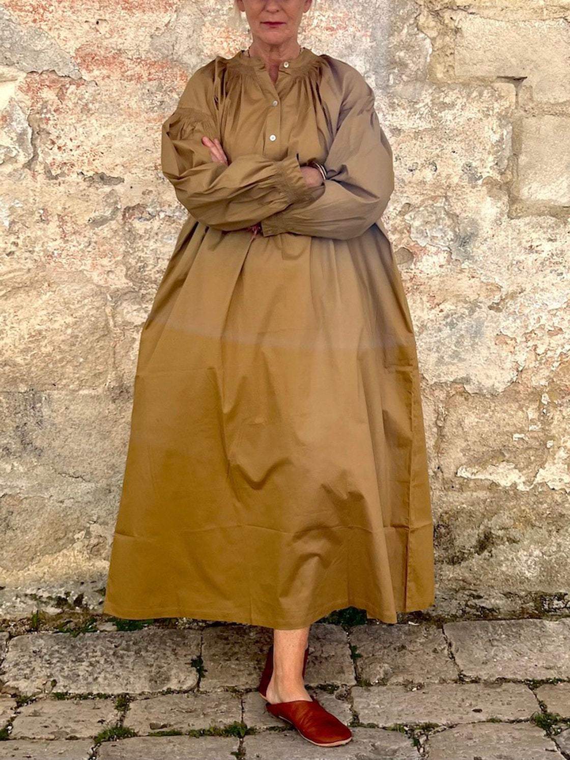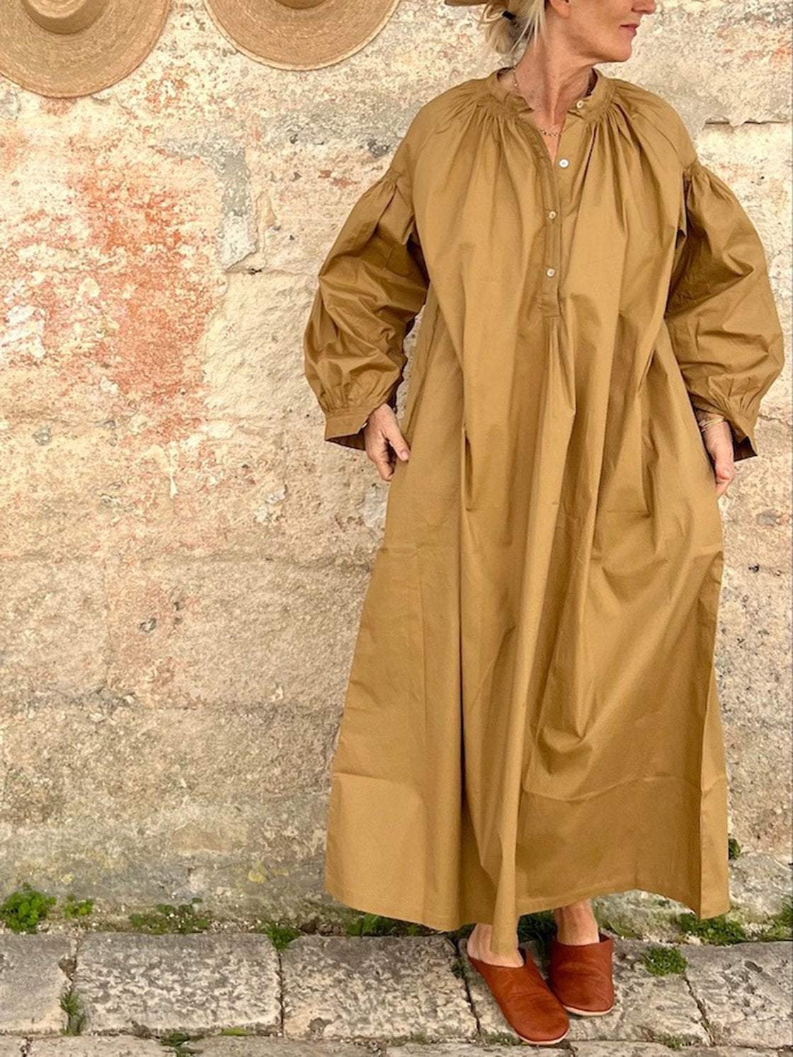 Women's Casual Solid Color Long Sleeve Dress 46ba
