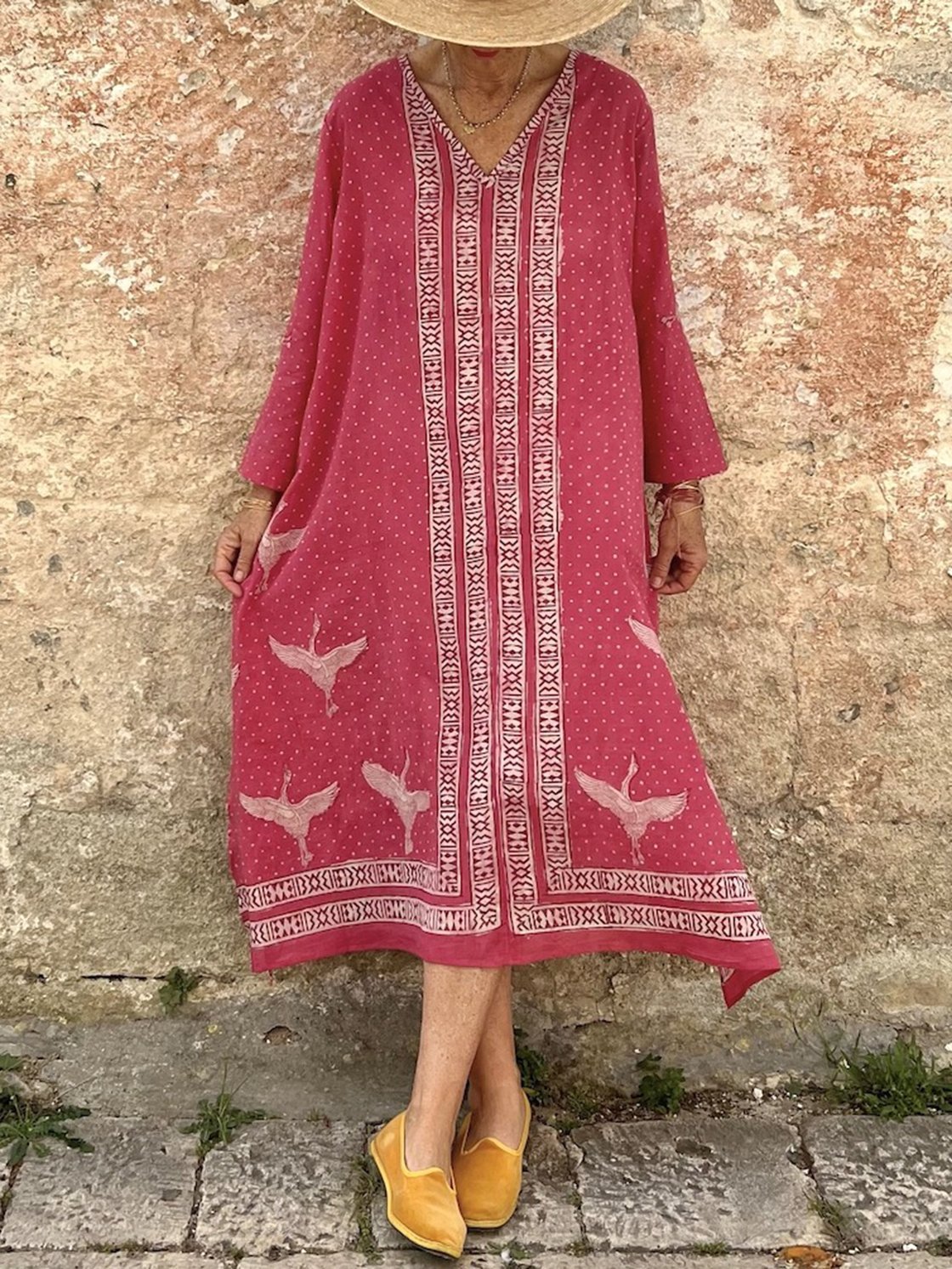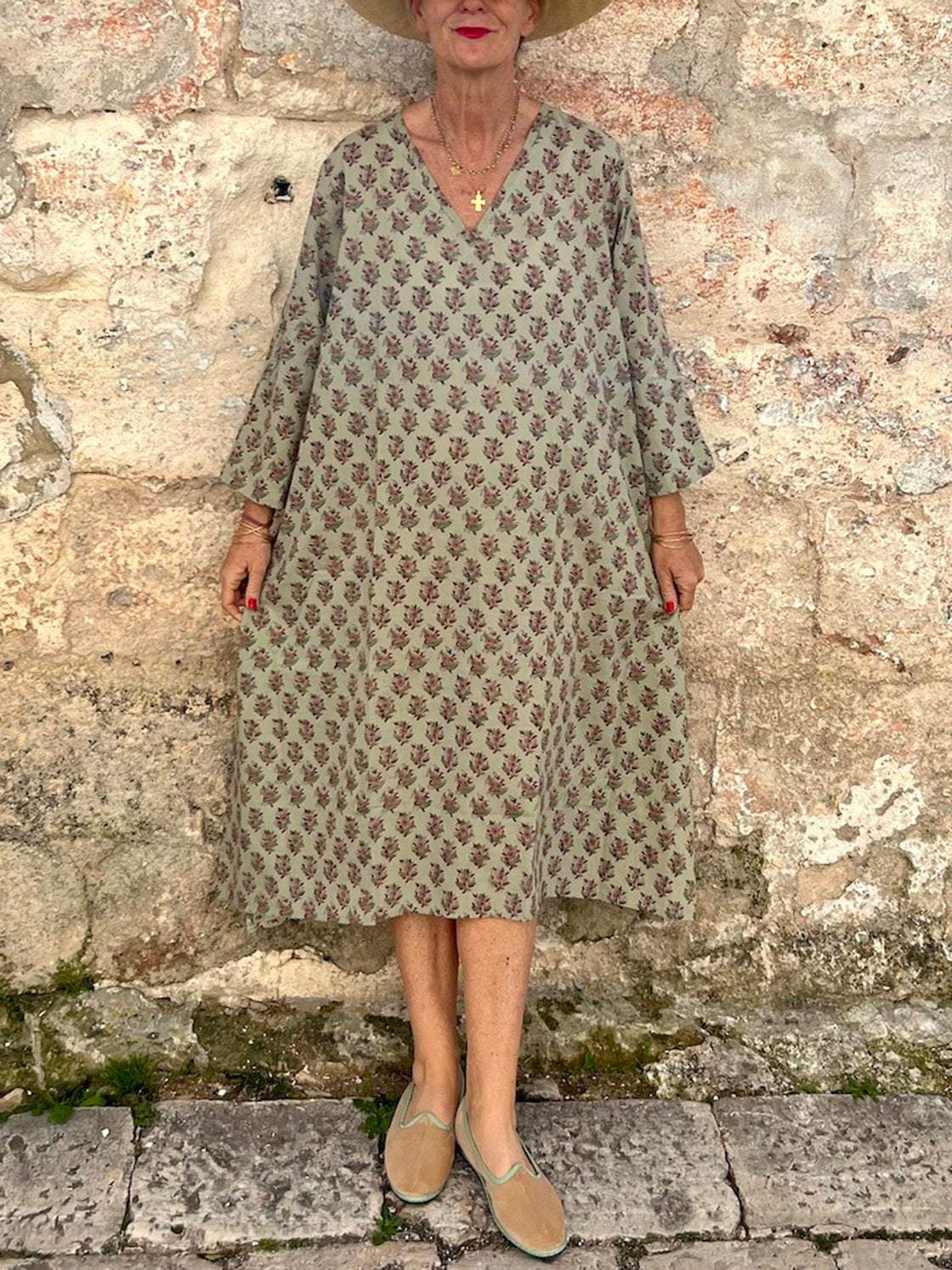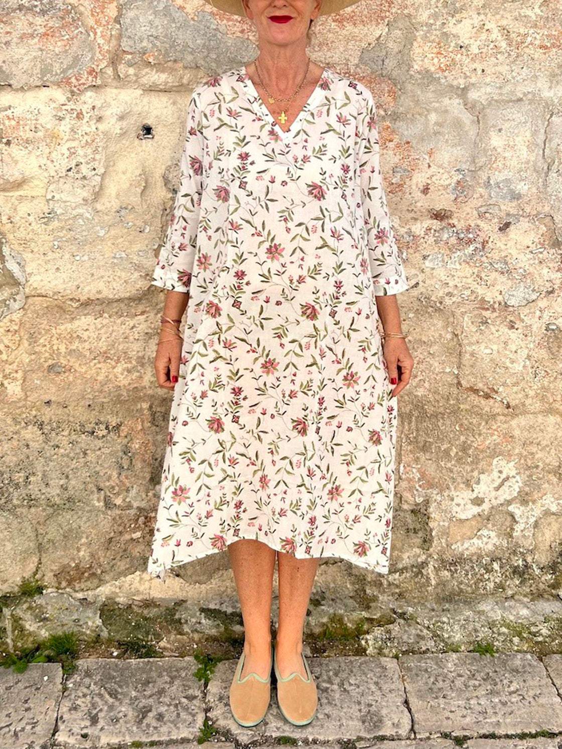 Women's Spring Elegant Flowers Irregular Ruffle Linen Dress 7336