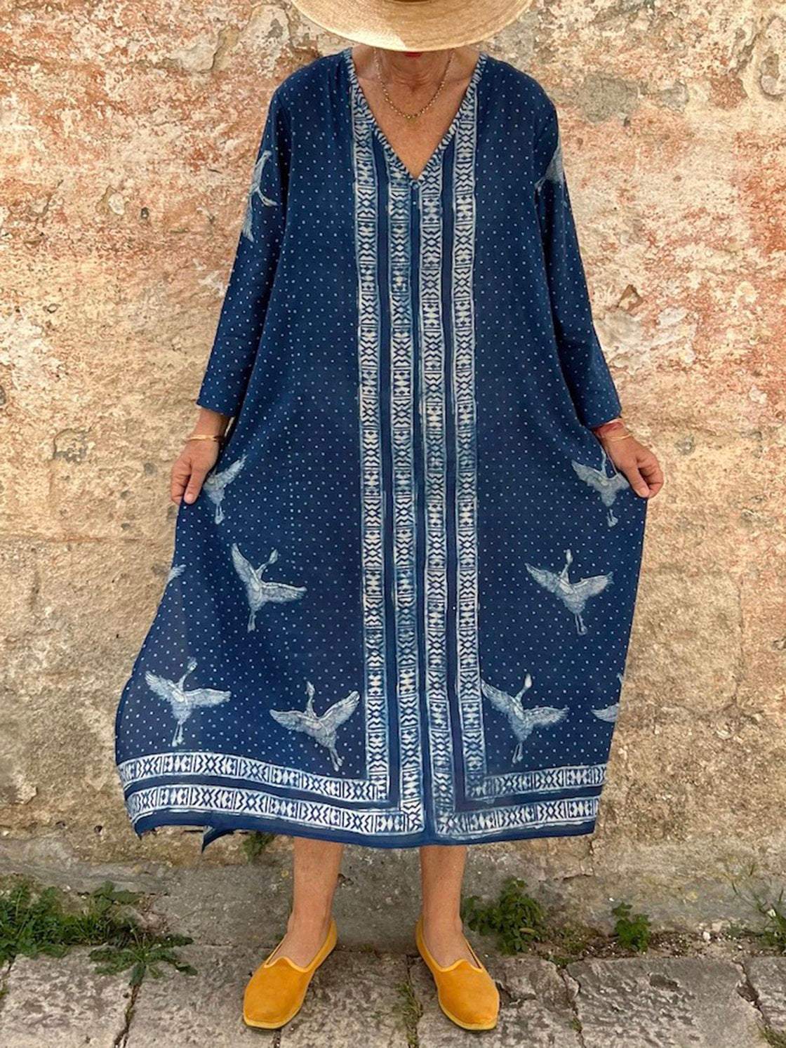 Women's Spring Elegant Gradient Flowers Irregular Ruffle Linen Dress 3679