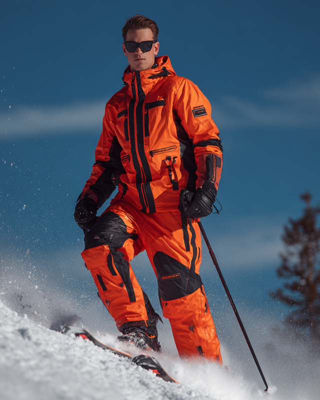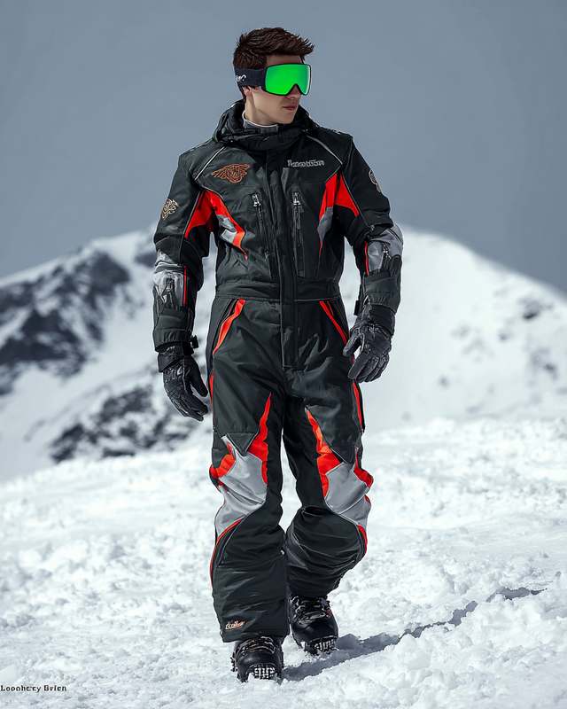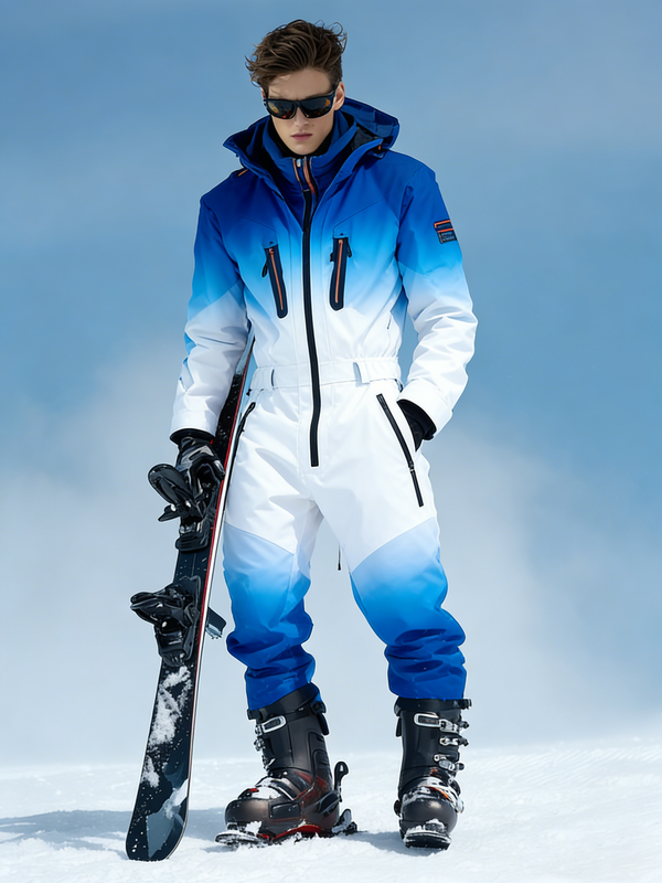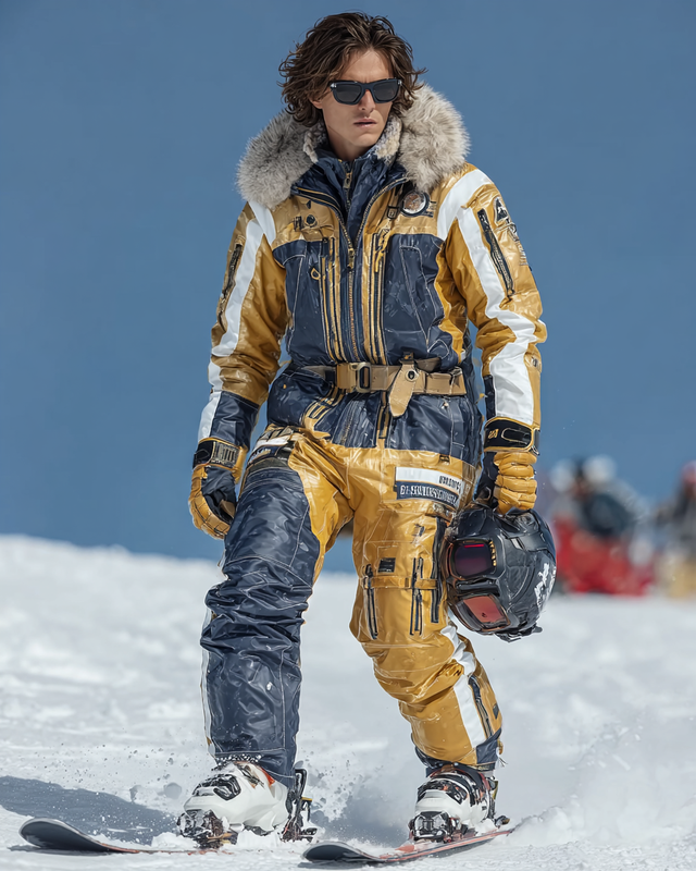 Men's Geometric Color Block Warm Ski Jumpsuit for Winter 2141