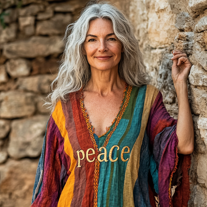 Vintage Loose Linen Patchwork Dress cf4c
